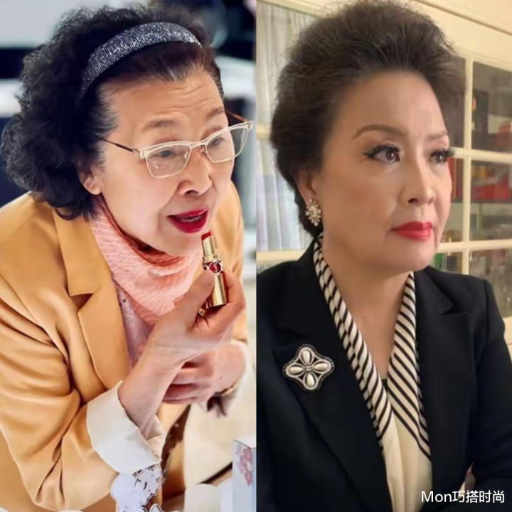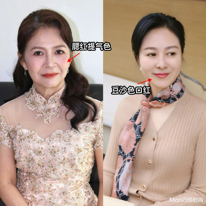 彩妆太浓也是很多中年女性化妆的雷区,比如有的阿姨追求放大双眼,粘了超长超密的假睫毛,画一个超粗上挑的眼线,拍出来的照片看着特别的僵硬,把原本的特色都削弱了,同时还会在苹果肌涂个猴屁股色的腮红、嘴巴涂上玫红色口红,全是重点,简直就像是唱戏似的,一点都不美观。