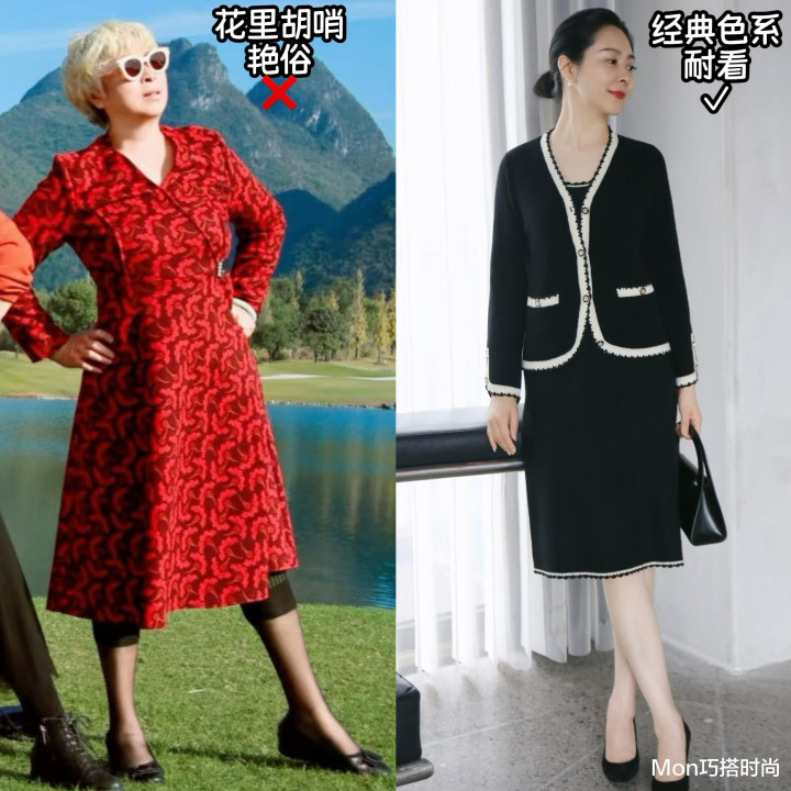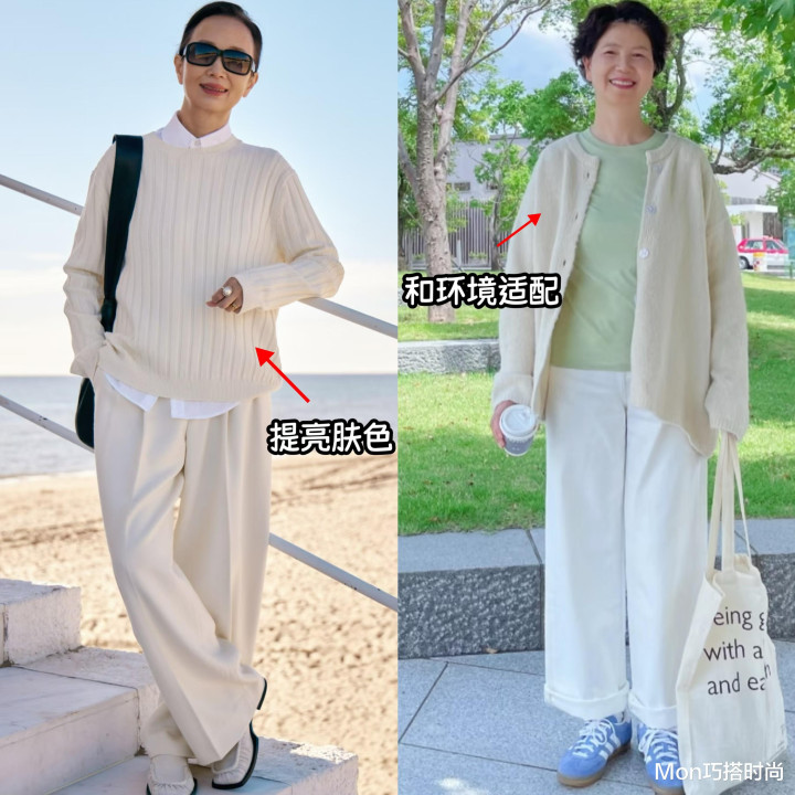可有的阿姨说,我就想穿点儿彩色、亮色的衣服怎么办?没关系,只要你搭配的时候不要从头花到脚就行啦。