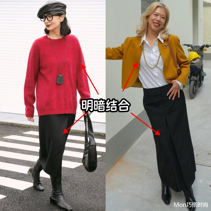 咱们可以去试试深浅结合的思路,比如上半身穿亮色的衣服,能提亮肤色,下半身就搭配深色的衣服压一压,平衡一下整个搭配的色调,看起来有层次感,不会显得杂乱。